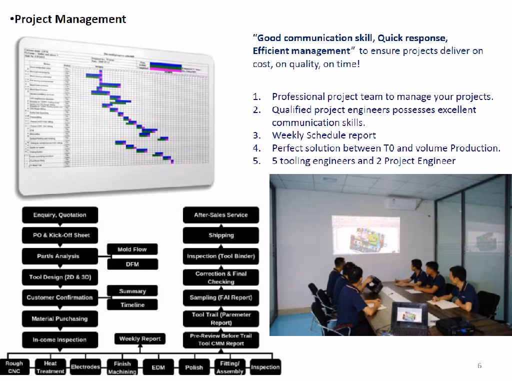 Committed to providing one-stop services from prototyping through toolings to high-volume product production with competitive price and short lead time based on advanced technologies, scientific management and continuous improvement.